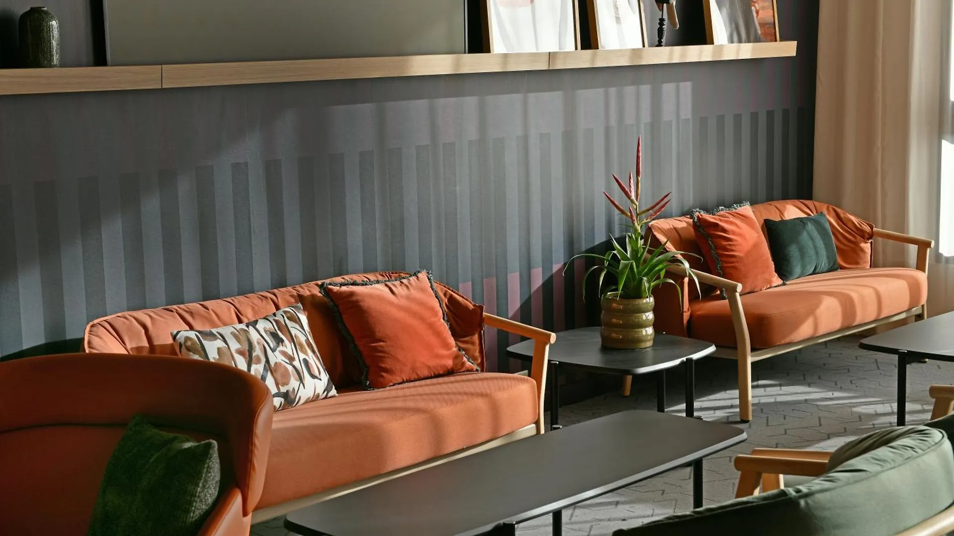 Het hotel biedt ook een restaurant en een lobbyruimte.